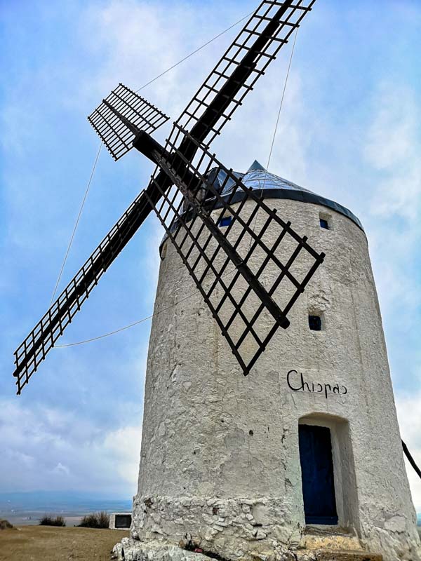 Quindi lasciamo Cordoba, facciamo una lunga deviazione e prendiamo la strada verso Madrid: ben presto le colline circostanti, che fino a quel momento erano popolate da pale eoliche, si riempiono dei primi mulini a vento, se ne vedono a bizzeffe in questa regione!