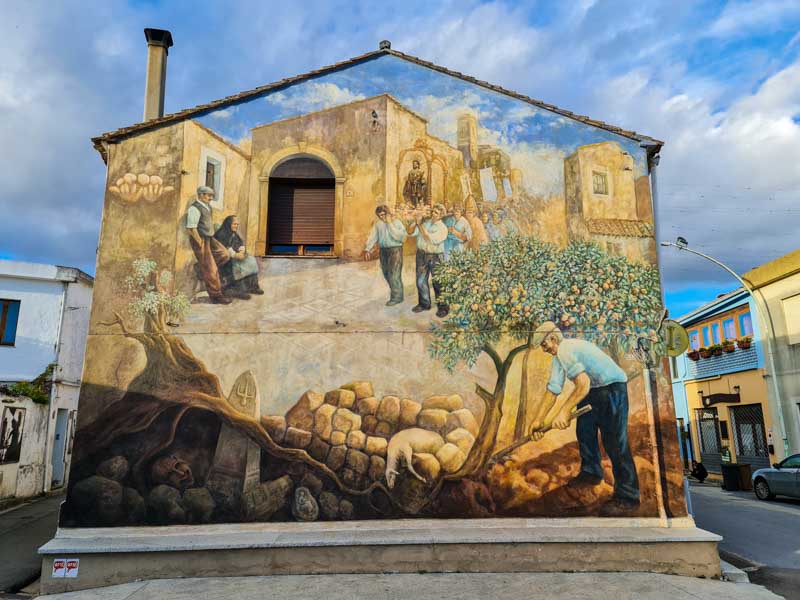 Girando per il centro, ma anche per la periferia del paese, non farai fatica a trovare moltissimi murales, creati a partire degli anni sessanta e ancora oggi rinfrescati o rinnovati. Raccontano sopratutto scene di vita quotidiana e le tante sfumature del mondo contadino.