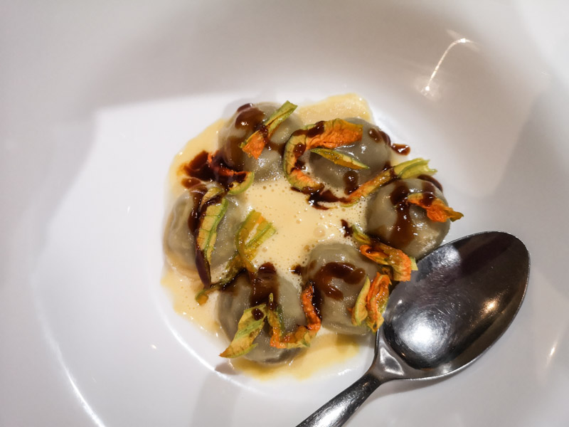 Siamo andati alla Locanda Murales attratti dalla cantina piuttosto che dal ristorante di alto livello. Eppure la sua cucina spunta eccome. Ci hanno spiegato che si sono riogranizzati proprio quest’anno, riaprendo in primavera dopo il periodo peggiore della pandemia. Una nuova brigata di cucina giovanissima che si è formata in vari importanti ristoranti d’Italia. E nonostante la giovane età, la loro buona esperienza è del tutto evidente per la creatività, l’estro, la voglia di fare bene e la passione per gli ingredienti.